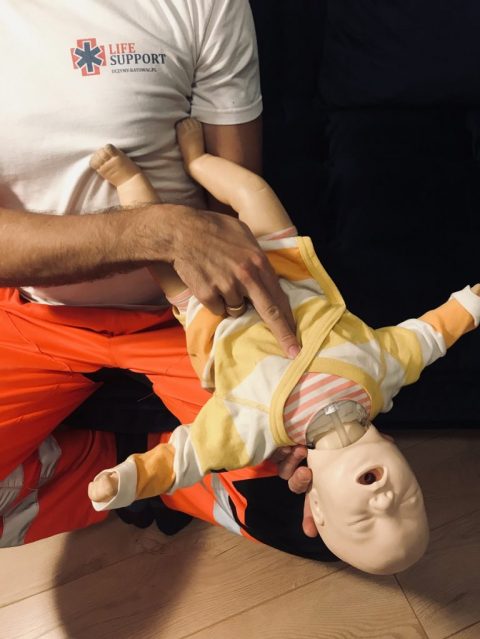 *trudno jednoznacznie stwierdzić kiedy jest najlepszy moment na wezwanie pogotowia. Jeśli jest ktoś z Tobą, zrób to jak najszybciej – nawet jeśli Twoje działania będą skuteczne dziecko musi być zbadane przez lekarza! Jeśli jesteś sam, pamiętaj o możliwości skorzystania z głośnika – możesz wezwać pomoc nie przerywając udzielania dziecku pomocy.